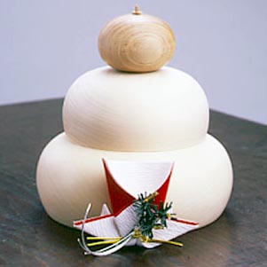 ホッとあたたかい白肌のお餅。よく見ると、杢目がはしる木のお鏡。 輪島の木地師・高田さんが銀杏...