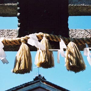 滋賀県は長浜の旧市街地にて発見。小さな神社の鳥居に掛けられた太さ約7センチくらいのこの注連縄...