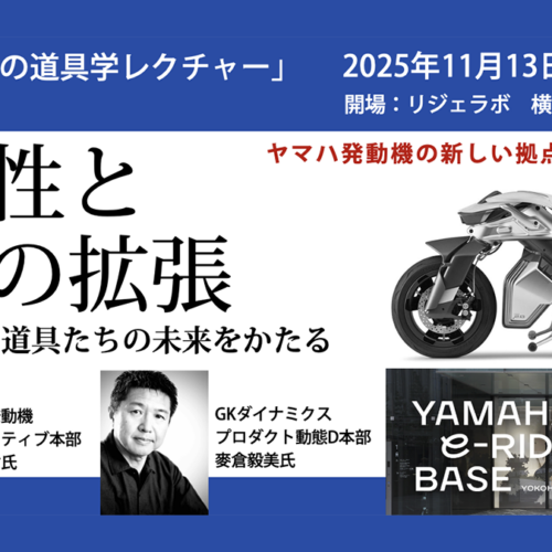 今年の秋の道具学レクチャーは、法人会員であるヤマハ発動機の新しくできた共創スペース「リジェラ...