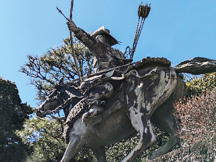 一方、明治維新の神仏分離令でも、「流鏑馬」は「穴八幡宮」へ引き継がれ、第二次大戦後の昭和28年(1953年)には流鏑馬神事として再興された。その長い歴史を物語るかのように、参門には、「穴八幡宮流鏑馬像」が青空を背景に颯爽と佇んでいる。