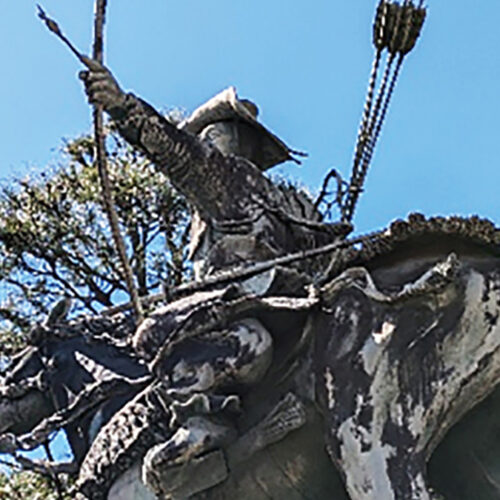 「穴八幡宮の流鏑馬(やぶさめ)像」― 蒼穹(そうきゅう)に射る渾身(こんしん)の矢