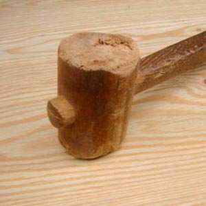 見た目にはぼろぼろの様子の木槌。私は工房を開設した約20年前に、この木槌を自作した。市販され...