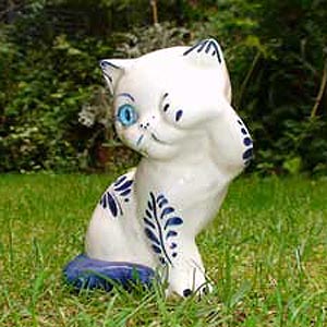 アムステルダムの骨董市で「招き猫らしい置物」を見つけた。左手で顔の毛繕いをしている可愛い姿。...